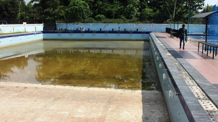 Sebab, kolam renang itu kini mangkrak, akibat betonnya jebol, dan diduga tak sebanding dengan dana Rp 5 miliar yang bersumber APBN 2012.