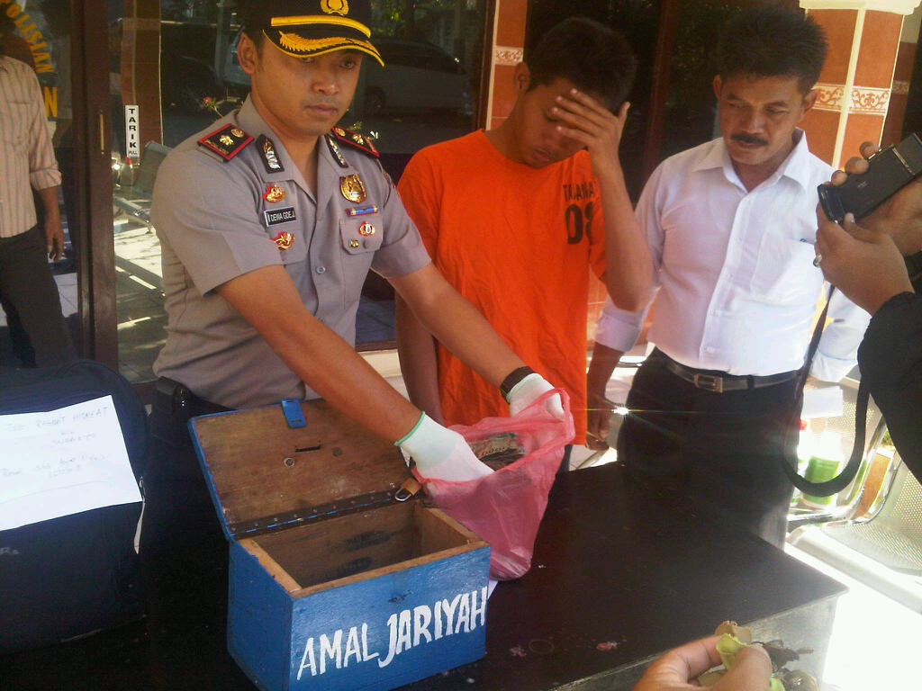 “Tersangka mencuri kotak amal setelah salat di Mushola tersebut. Tepergok warga, kemudian ditangkap dan diserahkan ke polisi. Sekarang, tersangka masih menjalani pemeriksaan oleh penyidik,” kata Kapolsek Krembangan Kompol Dewa Gede.