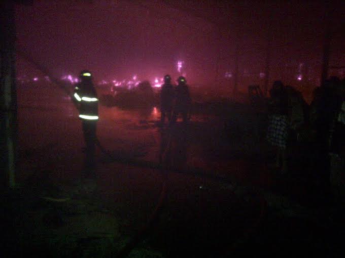 Kebakaran ini menghanguskan dua gudang yang berisikan puluhan ton kertas.