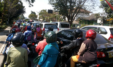 Kepaadatan kendaraan di Jl Raden Intan, Kota Malang, Senin siang (20/7/2015).