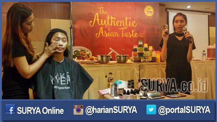 SURYA.co.id | SURABAYA - Menuju waktu berbuka puasa tinggal 2 jam lagi, guna memanfaatkan waktu weekend-nya agar lebih produktif, Sabtu (25/6/2016), Soraya (26) bersama sahabatnya datang ke Santika Hotel Pandegiling guna mengikuti tutorial make up dari Make Over dan tutorial hijab dari Zoya.