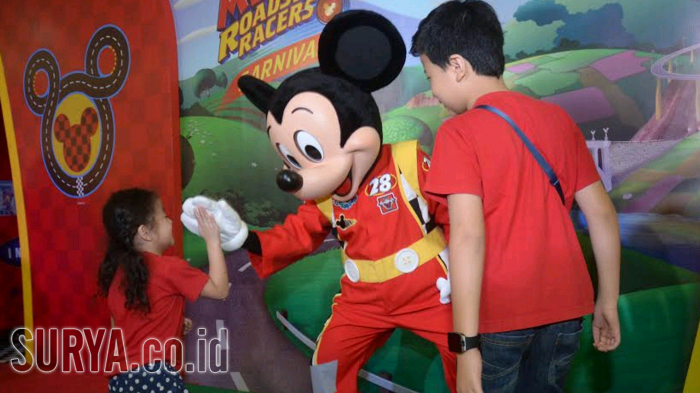 SURYA.co.id | SURABAYA - Mickey Mouse, karakter tikus populer dalam cerita animasi Disney Television Animation, bikin heboh pengunjung Ciputra World Surabaya (CWS), Kamis (13/7/2017).