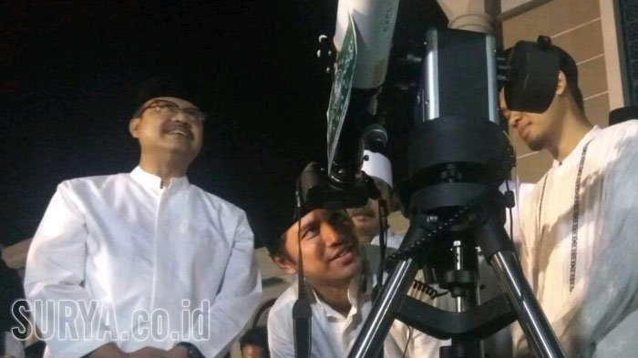 Bersaing di Pilgub Jatim, Gus Ipul dan Emil Nobar Gerhana Bulan Total di Masjid Al Akbar Surabaya