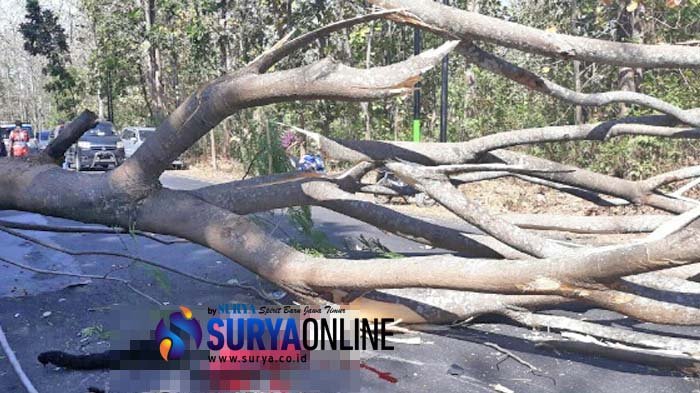 SURYA.co.id | SITUBONDO - Pengendara sepeda motor tertimpa pohon di jalan Raya Hutam Baluran, Kecamatan Banyuputih, Kabupaten Situbondo, Senin (26/08/2016). Akibatnya, satu orang tewas dan satu lainnya mengalami luka.