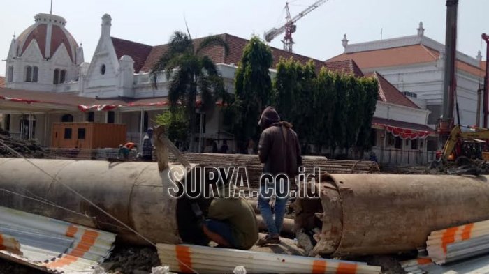 SURYA.co.id | SURABAYA - Pembangunan basemen di kawasan komplek Balai Pemuda Surabaya terus dikerjakan.