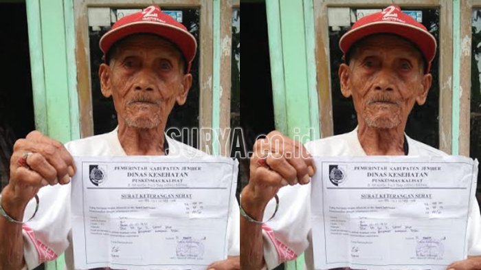 Mbah Tokin pun menunjukkan surat Kesehatan dari Pukesmas yang ia peroleh sebagai persyaratan untuk mendaftarkan ke Panitia Tajemtra 2018