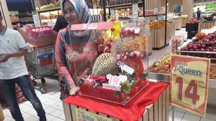 Sebuah Supermarket Asia Plaza Tasikmalaya memajang durian J-Queen dibanderol Rp 14 juta per butir. Durian ini sering menang Kontes.