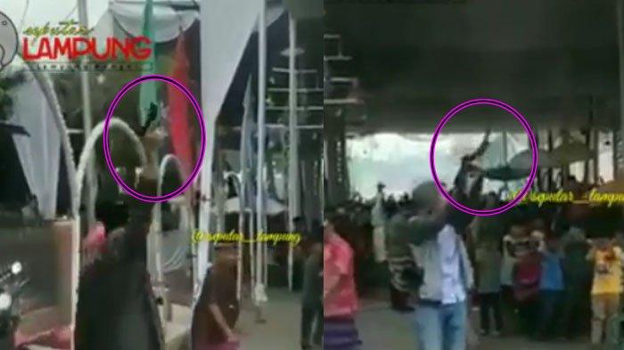 Video tiga orang menembakkan senjata api ke udara saat upacara adat di Lampung Viral di media sosial.