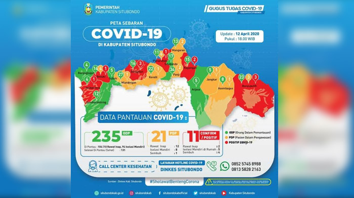 SURYA.CO.ID, SITUBONDO - Angka korban positif virus Corona atau Covid-19 di Kabupaten Situbondo terus bertambah. Dari 8 orang terkonfirmasi positif bertambah tiga orang, sehingga total terkonfirmasi positif Covid-19 di Kabupaten Situbondo menjadi 11 orang.
