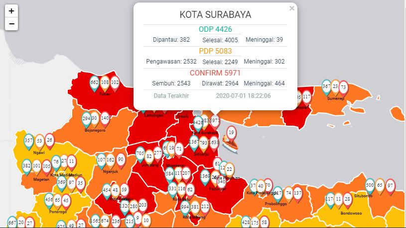 Update Virus Corona di Surabaya dan Jatim 2 Juli 2020: Positif Covid-19 Tembus 12.321, Sembuh 4391