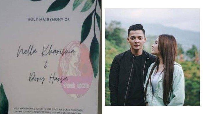 Dalam undangan bertuliskan "Holy Matrymony" tersebut, tampak Nella Kharisma dan Dory Harsa akan melangsungkan pernikahan pada Sabtu, 15 Agustus 2020.