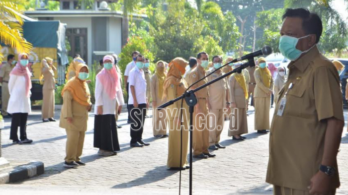SURYA.CO.ID, GRESIK - Bupati Gresik Sambari Halim Radianto memimpin apel Dinas Kesehatan Gresik dan Dinas Pertanian Gresik di Kantor Pemkab Gresik, Senin (21/9/2020).