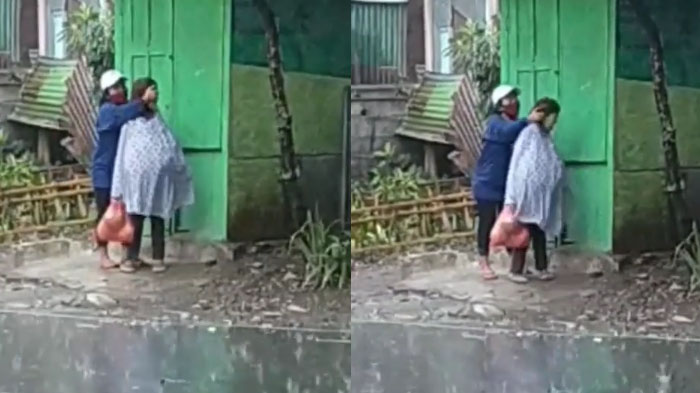 Tak hanya sekali, wanita muda bertopi putih dan bermasker itu memukuli sang nenek berkali-kali di bagian kepalanya saat kondisi jalan hujan deras.