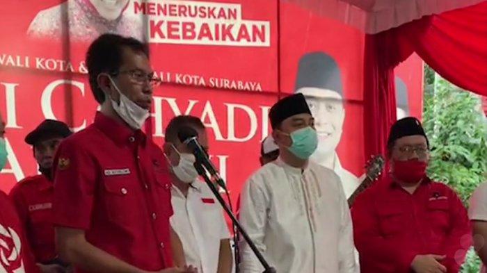 SURYA.co.id - Eri Cahyadi menyampaikan pudato kemenangan sementara berdasarkan hasil quick count Pilkada 2020 di Surabaya, sekitar pukul 16.30 WIB.