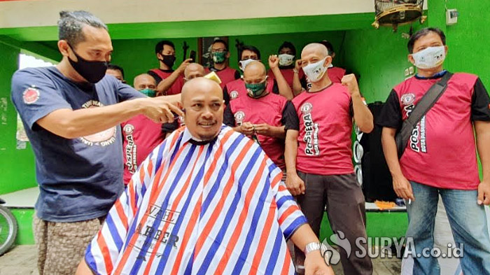 SURYA.CO.ID, PASURUAN - Sejumlah pengurus DPC Posko Perjuangan Rakyat (POSPERA) Kota Pasuruan rela mencukur gundul rambutnya, Jumat (11/12/2020) siang.