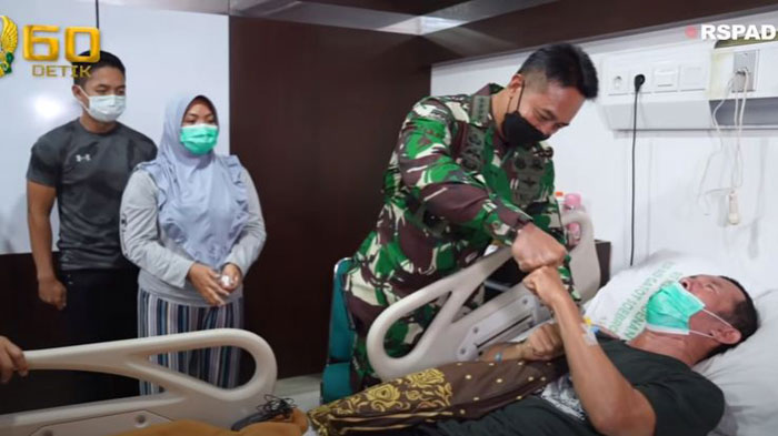 Tangis mantan prajurit Armed Kostrad, Kopka Ade Casmita pecah saat dijenguk KASAD Jenderal Andika Perkasa.