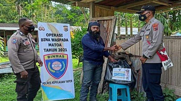 Satuan Binmas Polres Kepulauan Yapen juga memberikan bantuan berupa paket sembako.