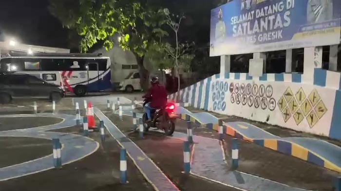 SURYA.CO.ID, GRESIK - Seorang pemuda di Gresik berlatih ujian praktik SIM seorang diri di halaman Satlantas Polres Gresik hingga Jumat (18/3/2022) malam. Dia berlatih sendiri sebanyak 16 kali demi mengikuti ujian praktik SIM.