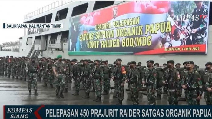 Melansir dari tayangan Kompas TV, 450 pasukan Raider 600 Modang Kodam VI/Mulawarman diberangkatkan sebagai satgas organik di Papua untuk melawan kelompok bersenjata.