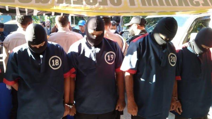 Enam tersangka itu adalah ZA (38) asal Jalan Bulak Banteng Surabaya, RA (23) asal Sokobanah Sampang atau Pasar Keputran Surabaya, BP (38) asal Jalan Sumbermulyo Surabaya, DF (23) asal Jalan Asem Mulya Surabaya, EA (38) asal Jalan Kedung Klinter Surabaya dan MW (49) Jalan Kedungdoro Surabaya.