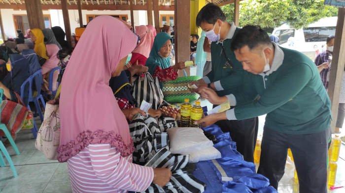 Dinas Perdagangan Koperasi dan Usaha Mikro Kabupaten Madiun menggelar operasi pasar di Balai Desa Mojorejo, Kecamatan Kebonsari.