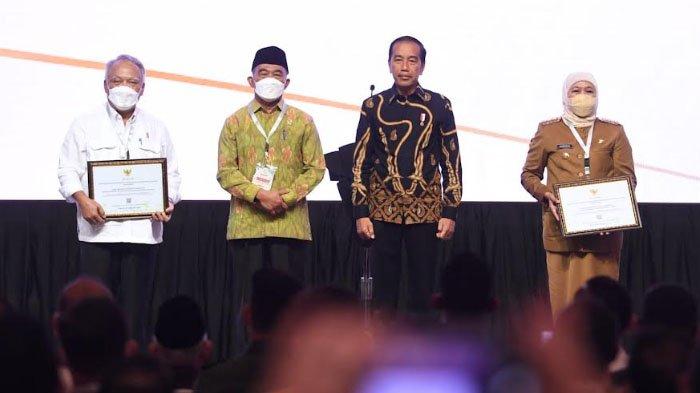 SURYA.CO.ID, SURABAYA - Gubernur Jawa Timur Khofifah Indar Parawansa menerima Data Pensasaran Percepatan Penghapusan Kemiskinan Ekstrem (P3KE) langsung dari Presiden RI Joko Widodo.