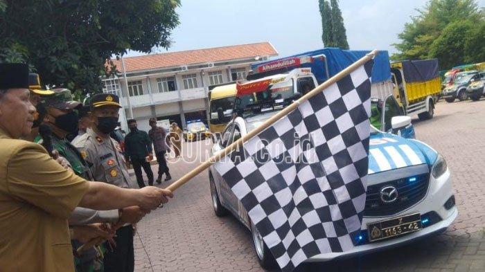Pendistribusian logistik Pilkades yang dibagi empat zona tersebut, secara simbolis dilepas Kapolres Situbondo, AKBP Andi Sinjaya di halaman Pemkab Situbondo.