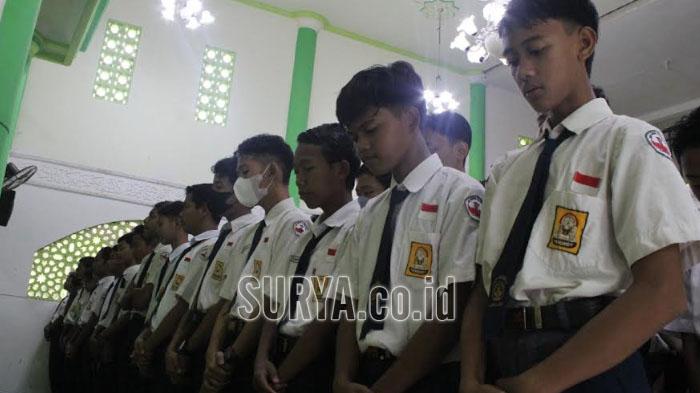 Murid-murid SMP Negeri 4 Kabupaten Lumajang. Senin (3/9/2022), para pelajar di sekolah itu menggelar salat gaib.