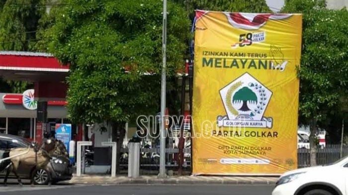 Baliho Partai Golkar Bertuliskan 'Izinkan Kami Terus Melayani' Bertebaran di Kota Surabaya