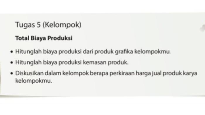 - Hitunglah biaya produksi dari produk grafika kelompokmu.