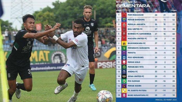 SURYA.co.id, - Berikut Hasil dan Klasemen Liga 1, PSM Makassar makin nyaman di puncak, Persebaya Surabaya masih di peringkat ke-8.