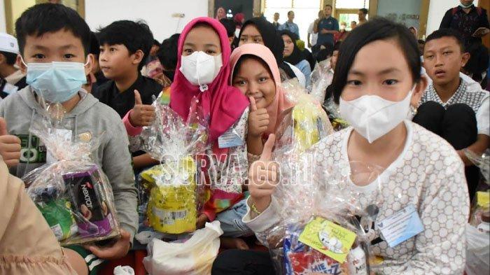 SURYA.CO.ID, KEDIRI - Menjelang Lebaran ratusan anak yatim di Kota Kediri mendapatkan bantuan sosial yang diserahkan secara simbolis oleh Wali Kota Kediri Abdullah Abu Bakar, Senin (17/4/2023).