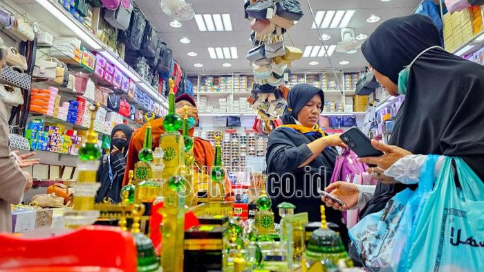 "Ayo ayo, murah-murah. Semua ada di sini," kata seorang penjual begitu melihat jamaah haji Indonesia melintas di depan tokonya, Minggu (9/7/2023).