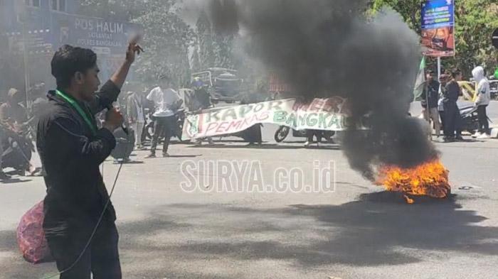 BREAKING NEWS Mahasiswa Bakar Ban Protes Buruknya Pengelolaan Sampah di Bangkalan