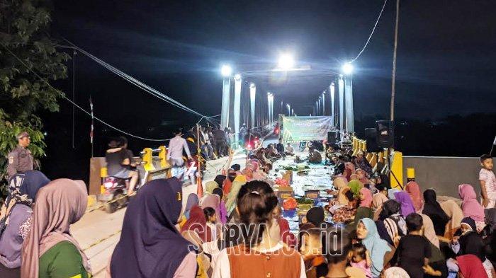 Sudah bisa dilewatinya jembatan dimaksud menyenangkan masyarakat Desa Simo, Kecamatan Soko, Kabupaten Tuban. Saking senangnya, mereka gelar syukuran Rabu (31/1/2024) malam di Jembatan Glendeng.