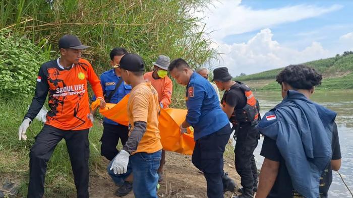 Tim SAR gabungan menemukan jasad NH (5), bocah perempuan yang terpeleset dan hanyut, saat mencari ikan di Bengawan Solo.