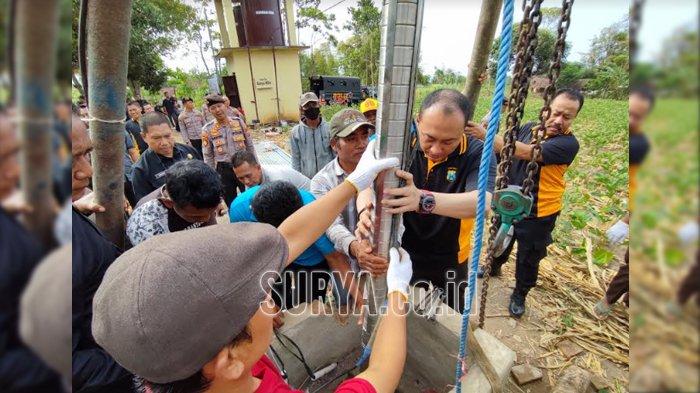 Polresta Banyuwangi membuat sumur bor dan memasang pompa air di salah satu titik wilayah tersebut untuk memenuhi kebutuhan air warga