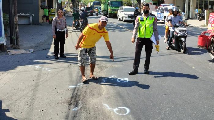 "Saat kendaraan mendahului dari sebelah kiri, pengendara sepeda motor tidak bisa menguasai stir dengan wajar sehingga terjatuh ke kanan. Saat bersamaan, melaju truk B 9280 JXR yang berjalan searah dari selatan ke utara," ucap Kanit Gakkum Satlantas Polres Gresik Ipda Achmad Andri Aswoko.