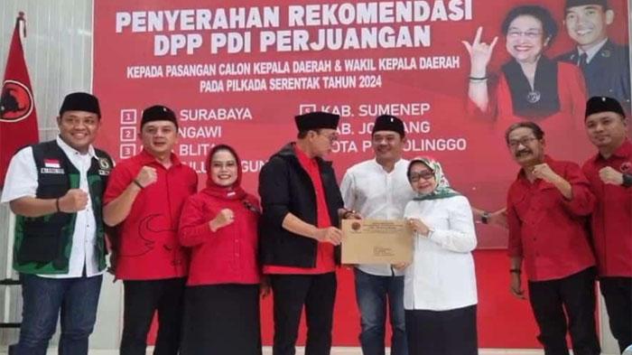 Penyerahan surat rekomendasi dari DPP PDIP ini juga berbarengan dengan enam bakal calon kepala daerah (bacakada) lainnya di Jawa Timur.