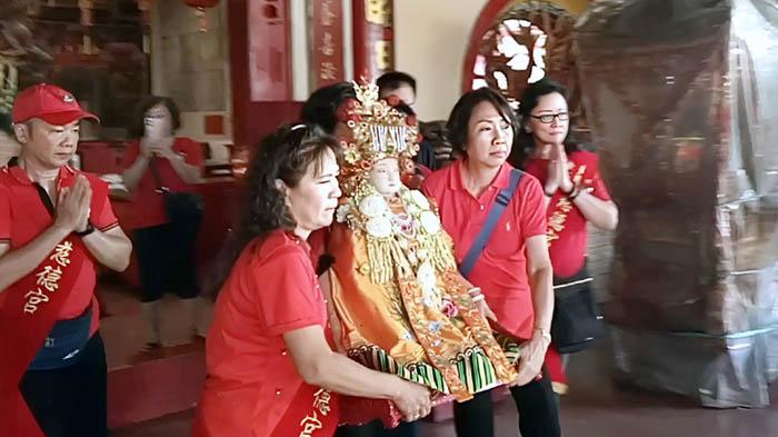 SURYA.CO.ID, TULUNGAGUNG - Makco, dewa utama di Klenteng Tjoe Tik Kiong Tulungagung, Jawa Timur (Jatim), mudik ke kampung halamannya di Pulau Meizhou, Fujian, Tiongkok.