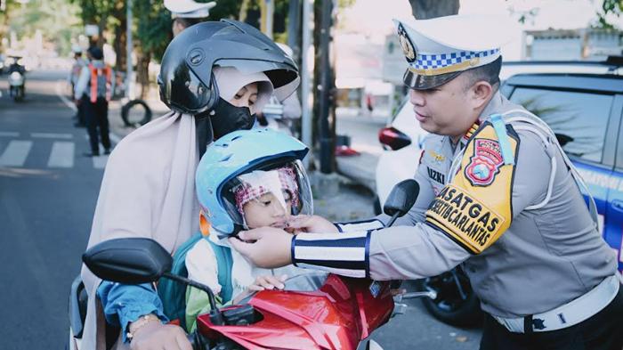 "Kami memilih pendekatan yang lebih simpatik, sambil membagikan brosur berisi tujuh prioritas pelanggaran lalu lintas dan memberi helm gratis kepada pengendara, terutama anak-anak, yang kedapatan tidak mengenakan pelindung kepala," kata Rizki, dalam rilis Humas Polres Gresik.
