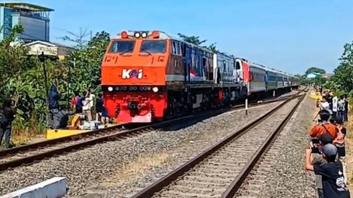 Warga Dibuat Nostalgia saat Parade Kareta Livery Vintage 2025 Melintas di Stasiun Mojokerto