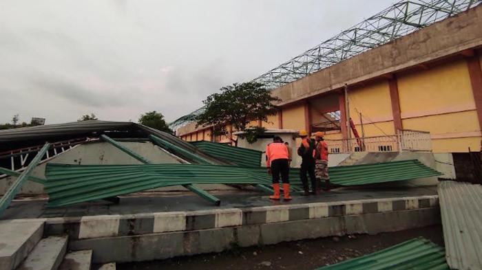 Beberapa segmen atap tribun penonton di Stadion Gelora Penataran ikut beterbangan dan roboh diterjang angin kencang.