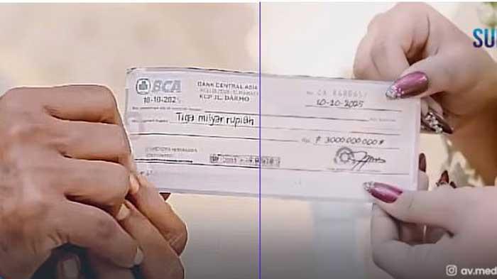 mahar cek Rp 3 miliar