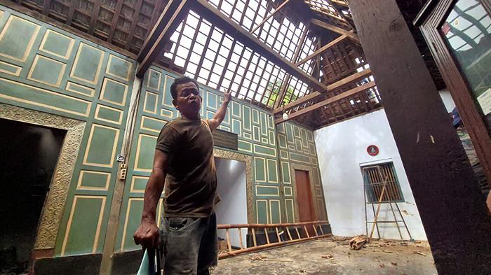 "Justru yang tahu adalah tetangga. Mereka datang dan memberitahu bahwa rumah saya, tepatnya ruang tengah yang dari joglo itu, gentengnya rontok," jelas Agus.