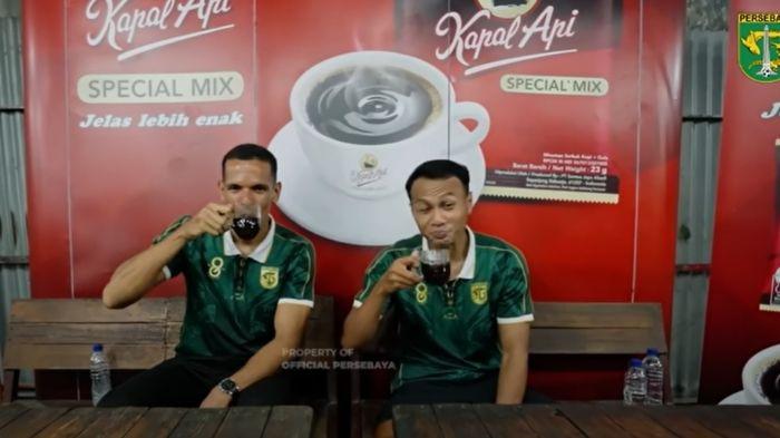 Momen 2 Bintang Persebaya Surabaya Buatkan Minuman Kopi untuk Bonek dan Bonita
