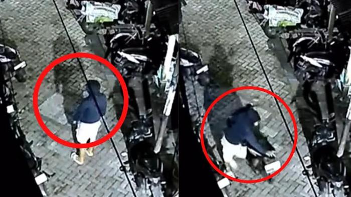 Berdasarkan video CCTV berdurasi 34 detik, pria tersebut tampak memakai jaket sweater hoodie warna hitam dan bercelana pendek.