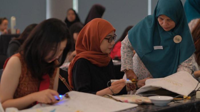 Melalui kegiatan ini, para peserta diajak mengekspresikan kreativitas mereka dengan membatik pada tote bag menggunakan pewarna alami.