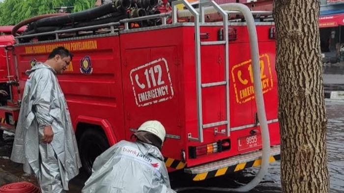 Untuk mempercepat surutnya genangan, petugas mengerahkan sejumlah unit kendaraan pemadam kebakaran untuk melakukan penyedotan.