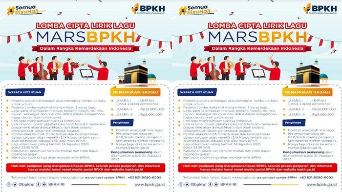 Dalam rangka menyambut HUT Kemerdekaan RI ke-78, Badan Pengelola Keuangan Haji (BPKH) menggelar lomba cipta lirik mars BPKH.
